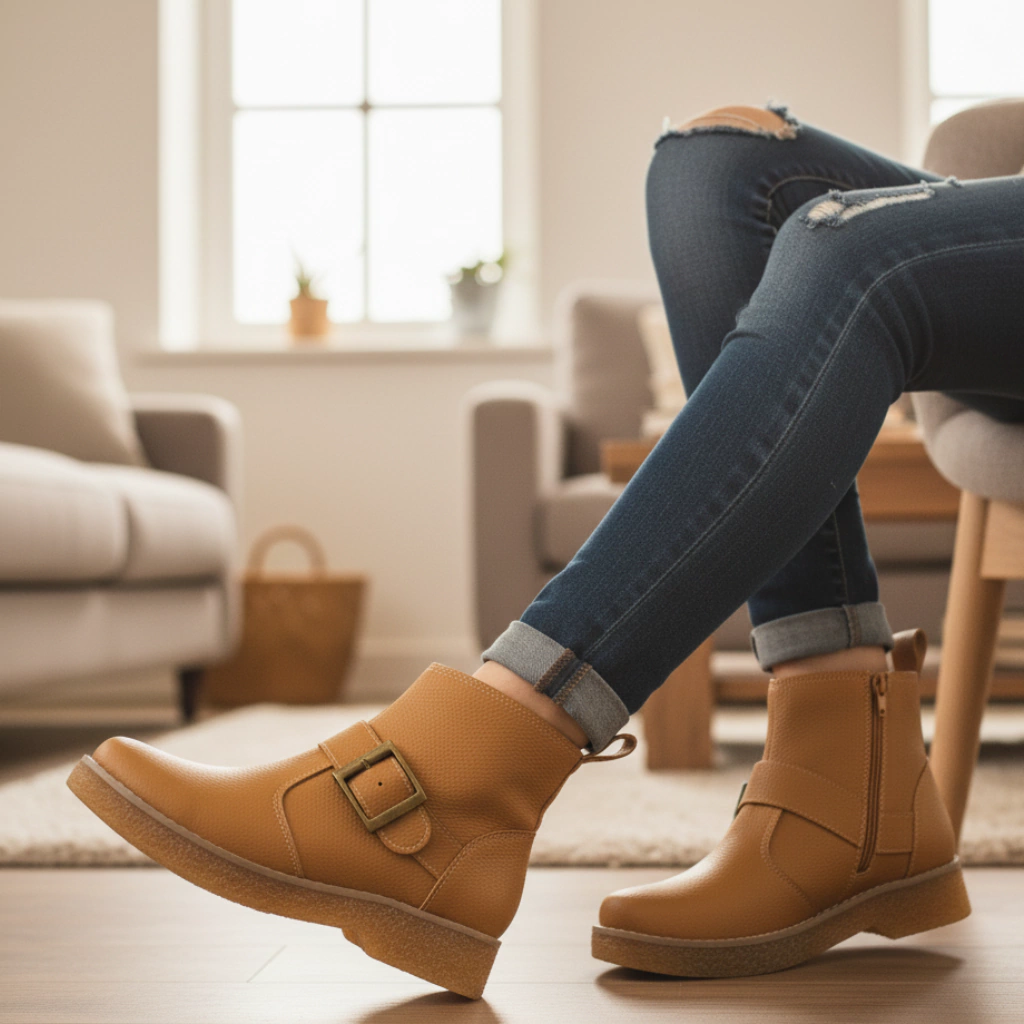 La Bota Casual Suela Crepe Color Suela con Hebilla Metálica es el equilibrio perfecto entre estilo y comodidad. Su diseño moderno con textura suave y detalles cuidados la convierten en una opción ideal para todos los días.