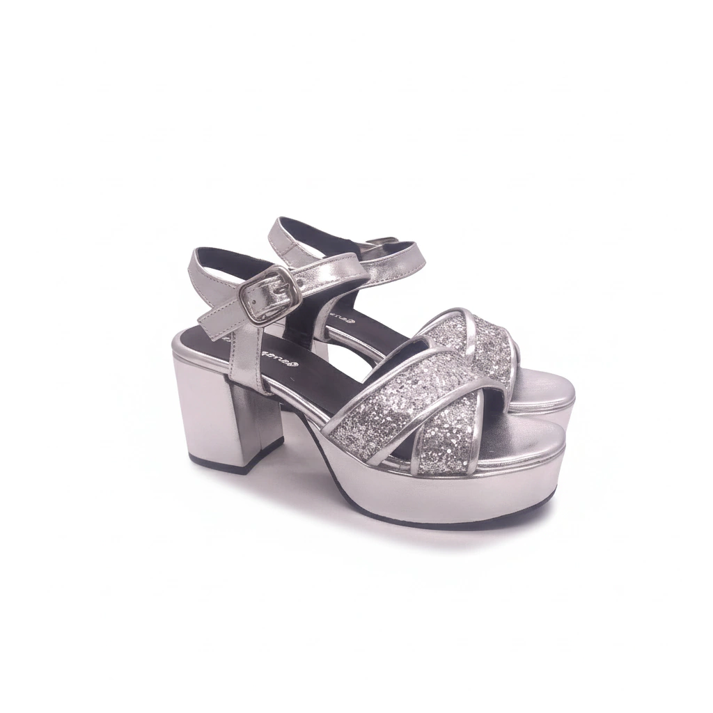 Nuestra sandalia plata con plataforma y brillos cruzados es la opción perfecta para quienes buscan sumar altura y elegancia sin renunciar a la comodidad en cada paso.