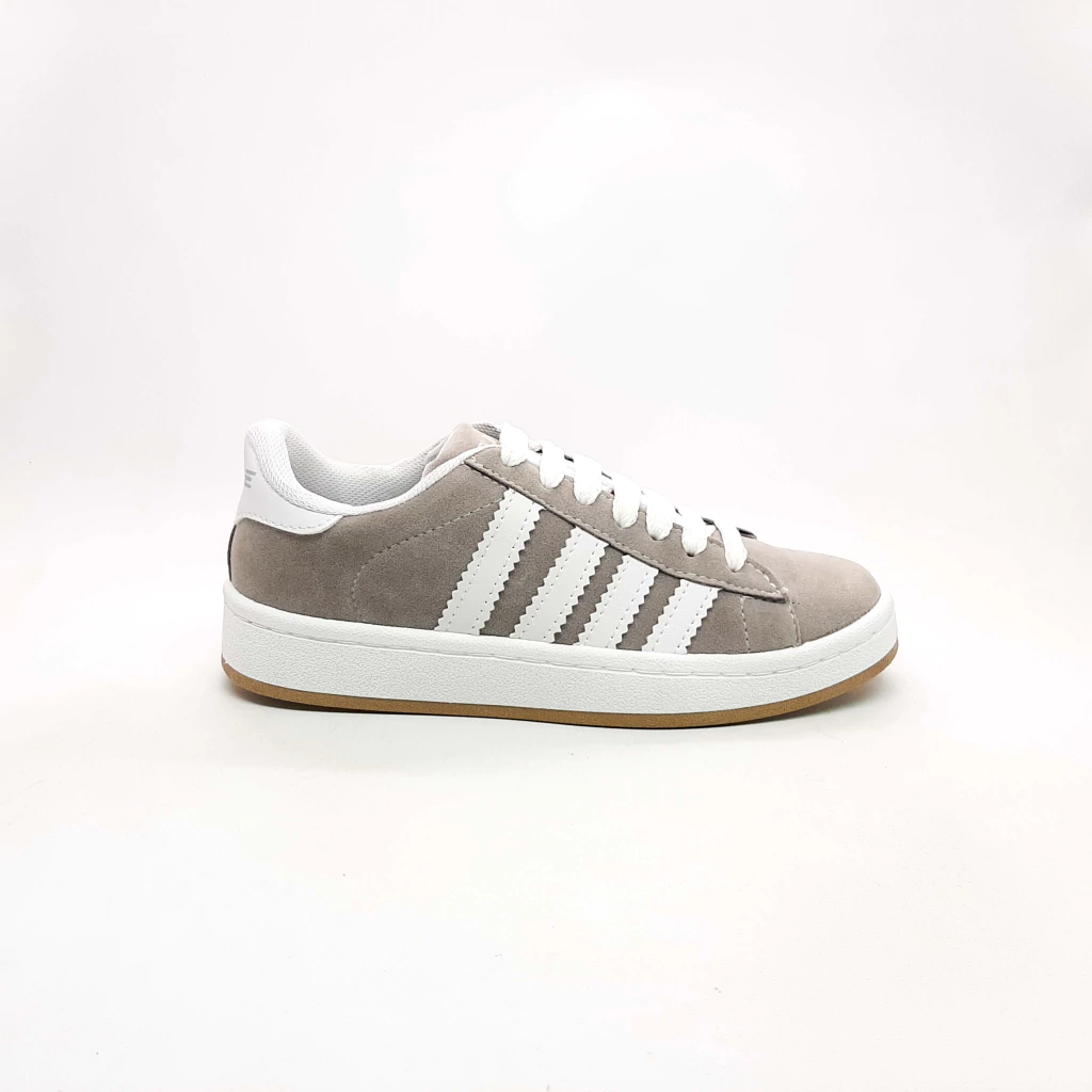 La Zapatilla Urbana Gris de Gamuza con Tiras Blancas es la opción perfecta para quienes buscan comodidad diaria sin renunciar a un estilo moderno y versátil.